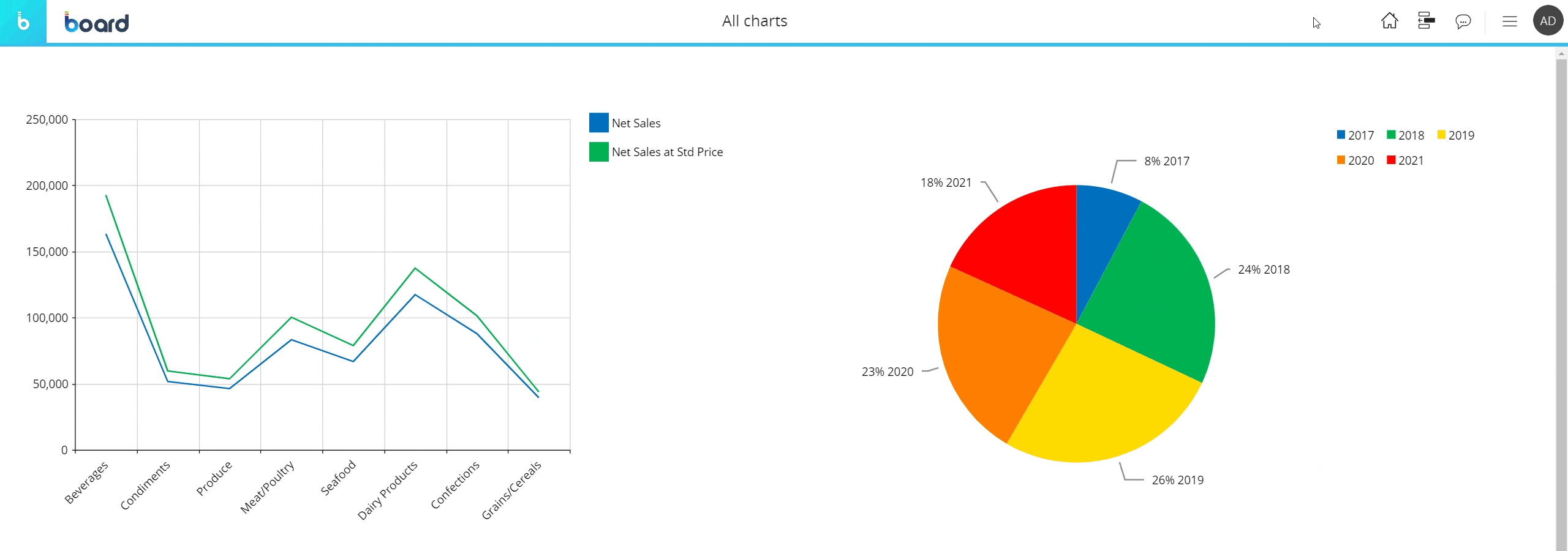 To apply a selection on a chart, you can also select a data point (or more, if the chart allows it) with a single click and click the Select icon (