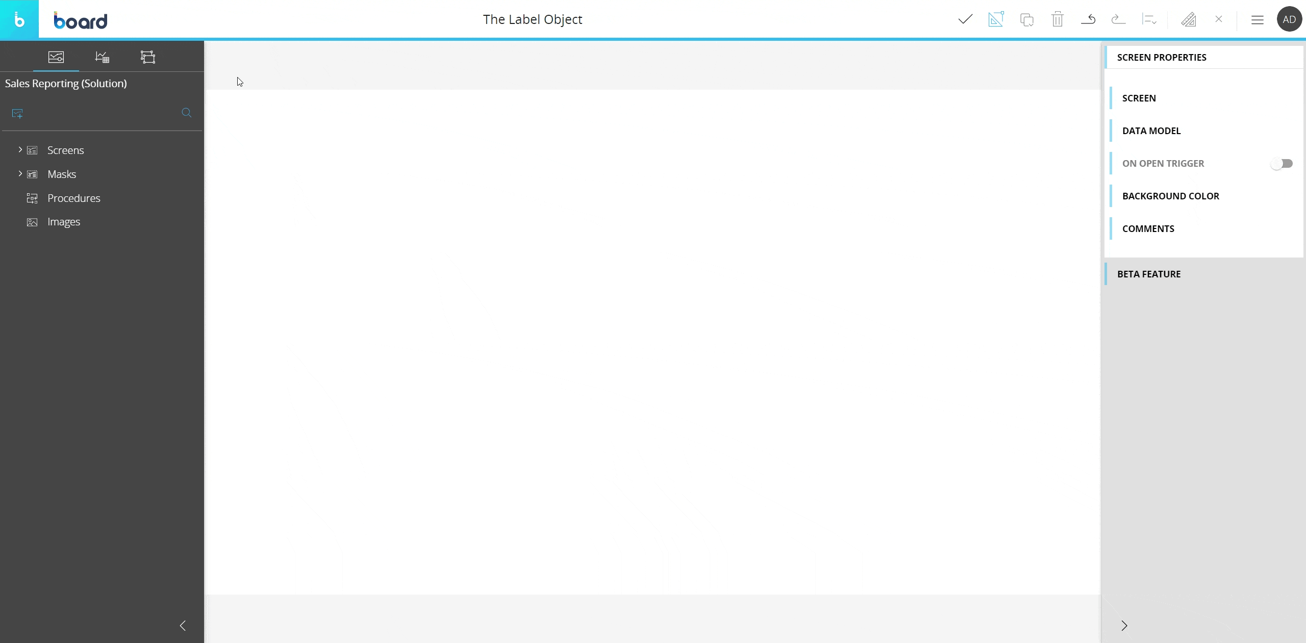 Label properties are available from the contextual right panel of the Screen editing page once the Object is selected.
