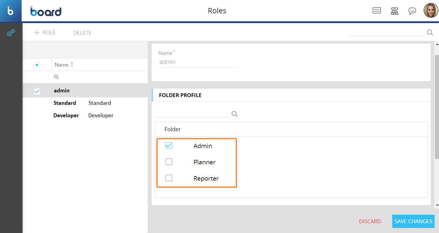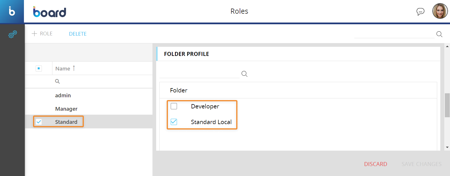 Board allows you to assign multiple Folder security profiles to a single Role. In this case, a user associated with that Role is able to access Capsule folders that are refereced in at least one of the security rules of all Folder security profiles assigned to that Role. In the case where some of these security rules apply to the same Capsule folder, Board considers the one with the highest access level.