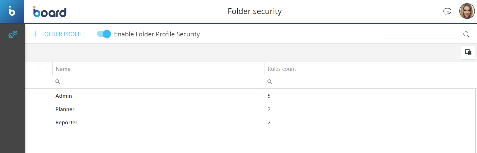 Folder security profiles represent the third security layer of Board's Four Security Layers model.