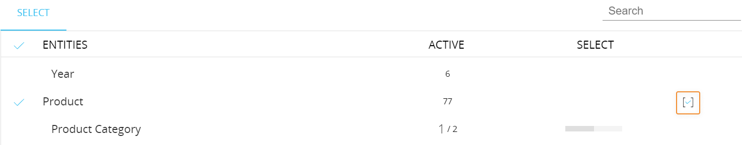 - Pick the desired Cube and click the "SELECT" button. A selection based on all Entity members that have non-0 value on the chosen Cube will be applied