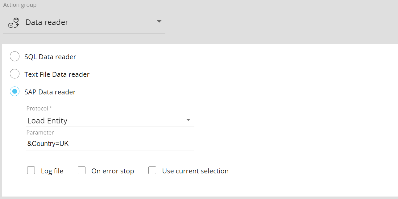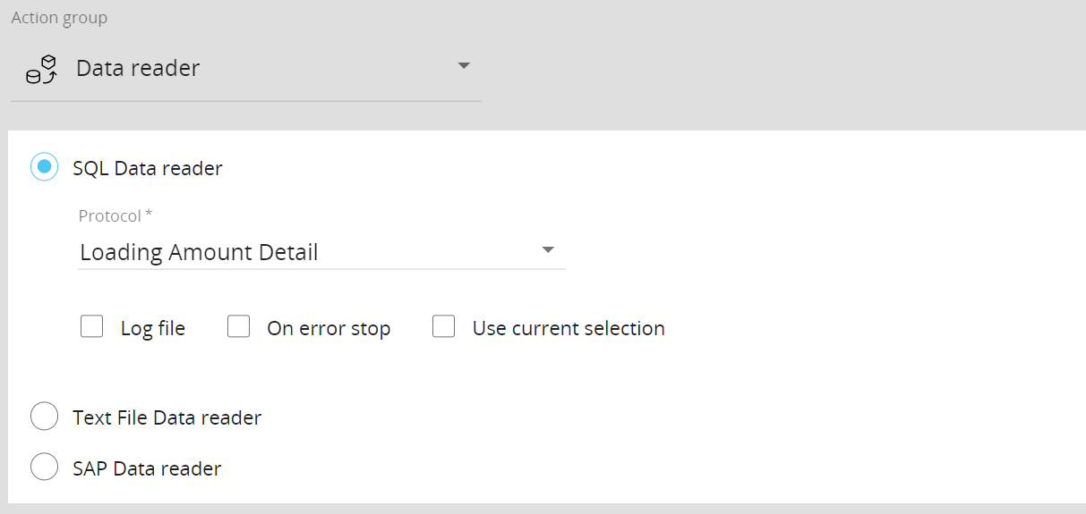 This topic describes the Procedure Actions included in the Data reader Action group and their specific properties.