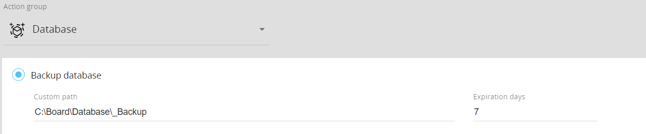 Board will create an exact copy of all files and folders of the Data model and save them, by default, in the Board\Database\_Backup directory. You can change the directory by entering a different path in the “Custom path” field.