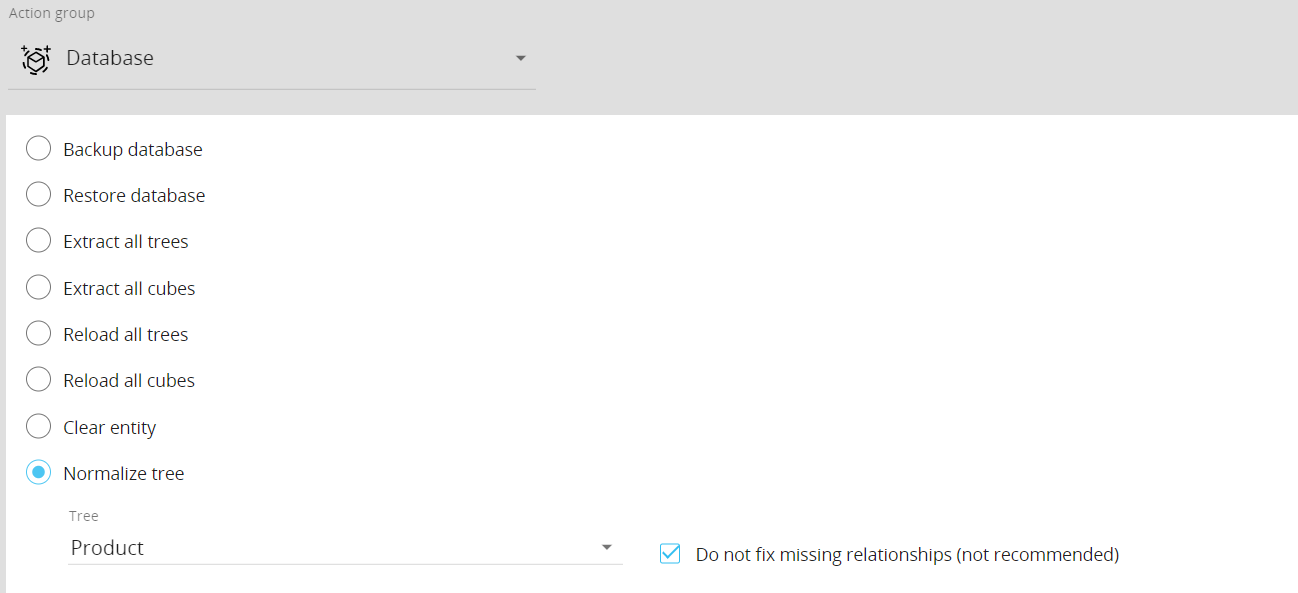 - Normalize tree. This step allows you to perform the “Normalize” feature on one or all relationship trees.