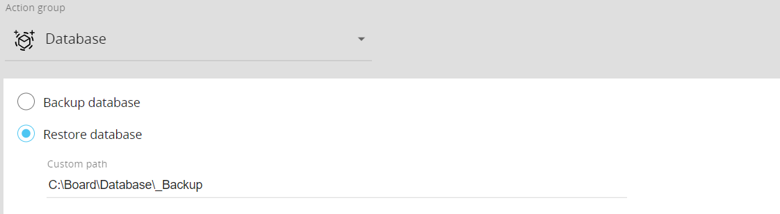 If you want to restore a specific backup, you have to insert the full path of the desired backup. For example, Board\Database\_Backup\2023-01-12 16-11-44-932@@Datamodel.hbmp.