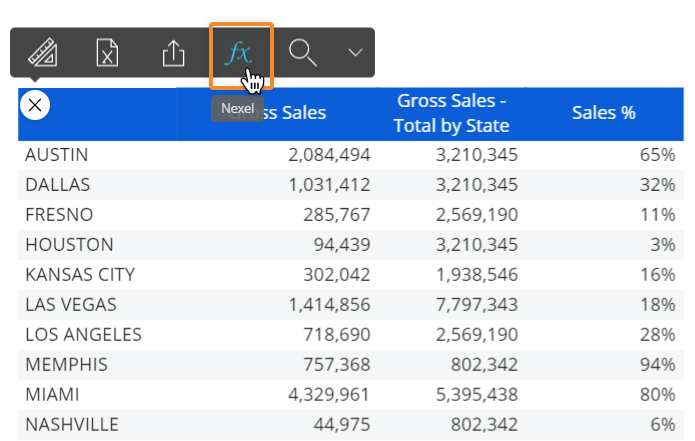 Once enabled, you can access the Nexel configuration page (Formula editor) from the sliding toolbar of the Data View: