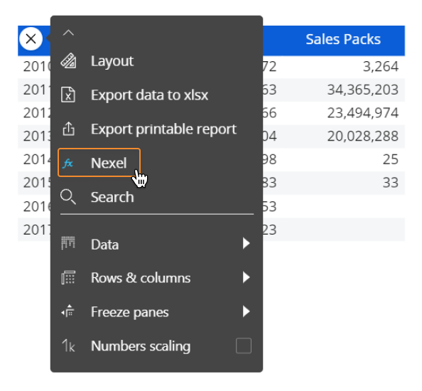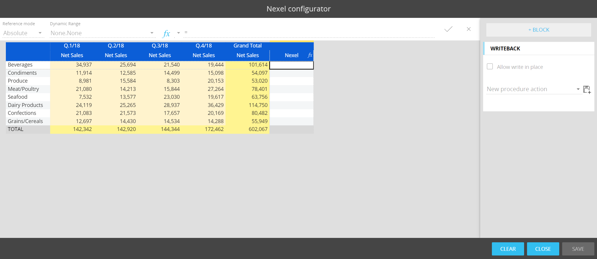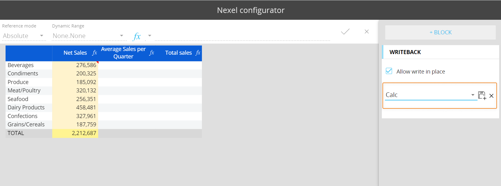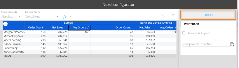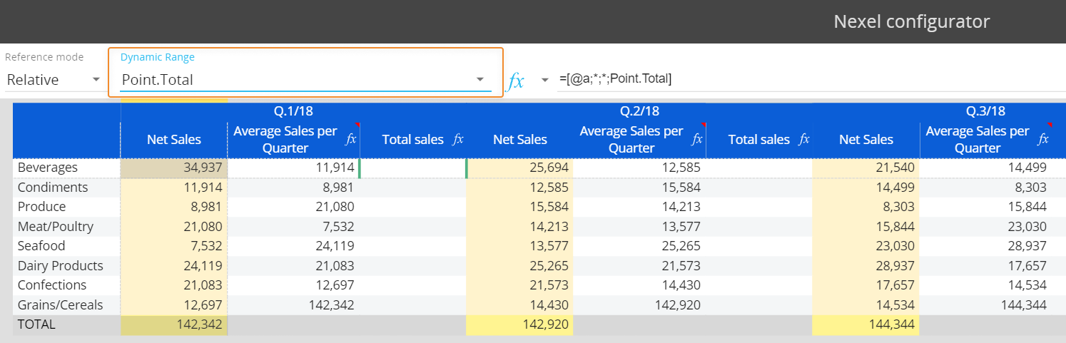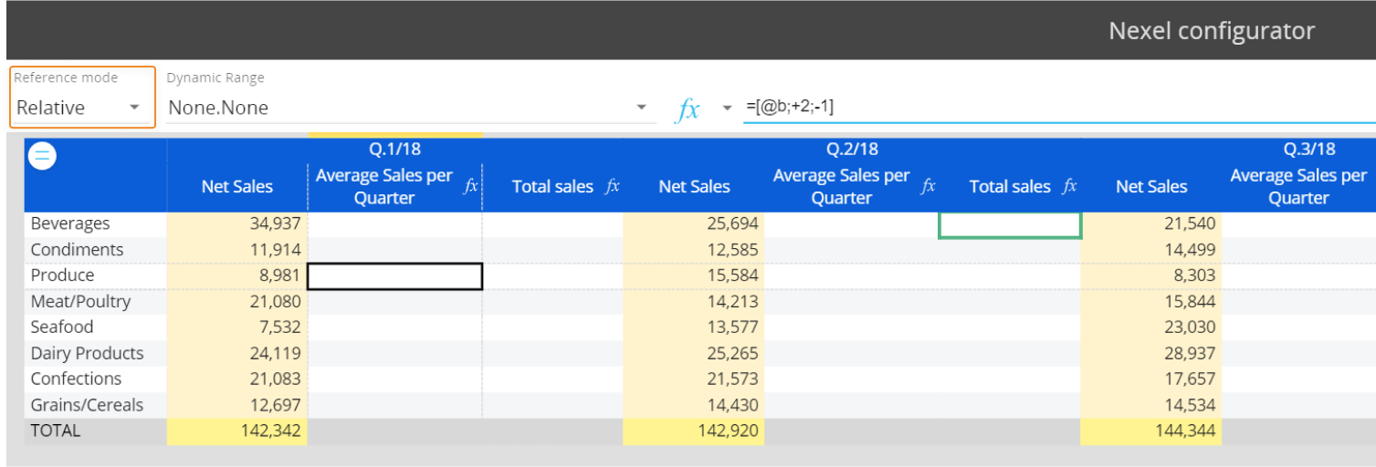 Nexel combines the flexibility and the versatility of a spreadsheet-like application with the power and robustness of a multidimensional object as the Data View. It offers a wide library of formulas embedded in the reporting layer to provide additional calculation capabilities on columns, ranges of cells and even single cells.