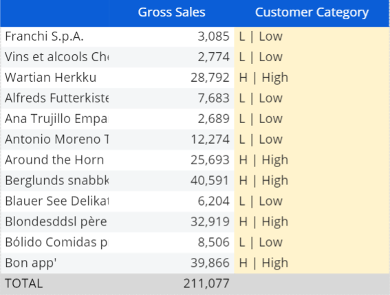 - "High" for customers whose sales value is above the average of the total sales