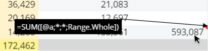 - For the "Total sales" row → =SUM([#TotalRevenue;@a;*;Range.Vertical])