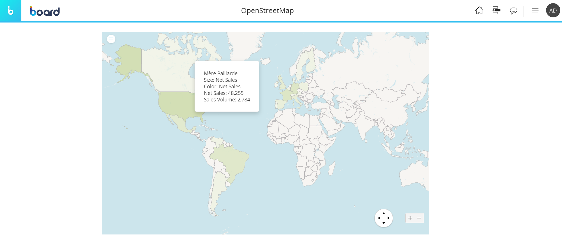 Board includes two out-of-the-box GeoJSON files, one for the entire world to be used at zoom level 0 and one for US States to be used at higher zoom levels.