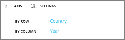 Depending on the Object the Layout is associated with, the "BY ROW" and "BY COLUMN" fields may not be available or may have different names. For example, some Chart Objects have the following Axis area to better reflect how data is dimensioned in the Objects themselves: