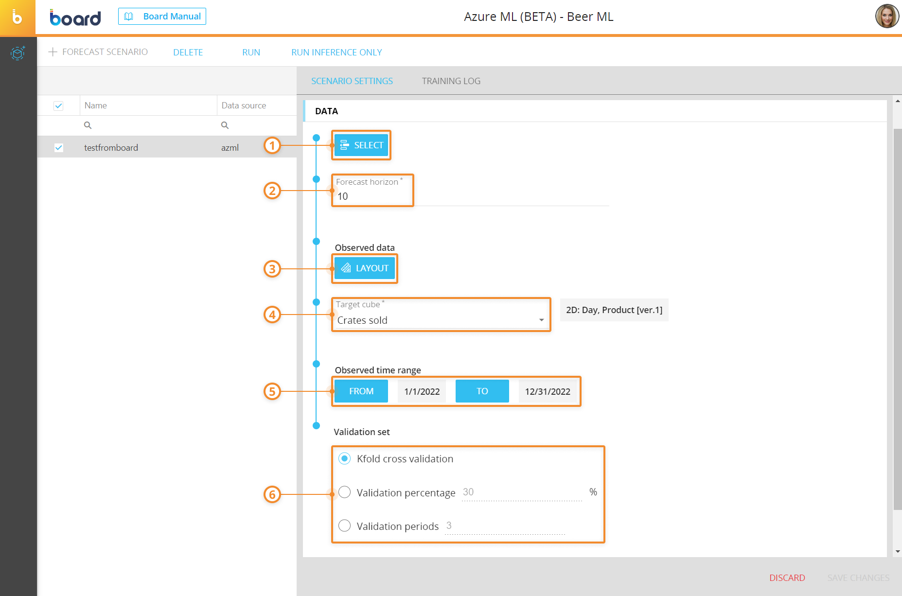 This topic describes how to create an Azure ML forecast scenario and all available options.