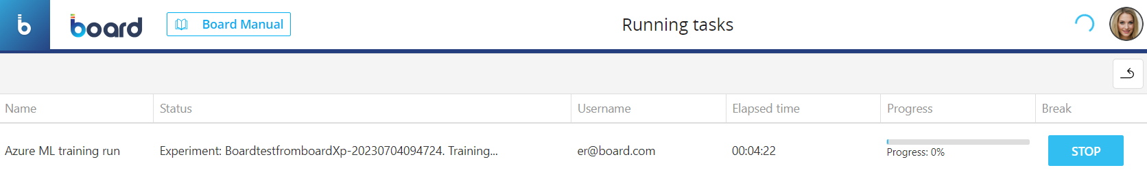 Board automatically checks the progress of the training phase every 20 seconds in order to notify the user when it is completed.