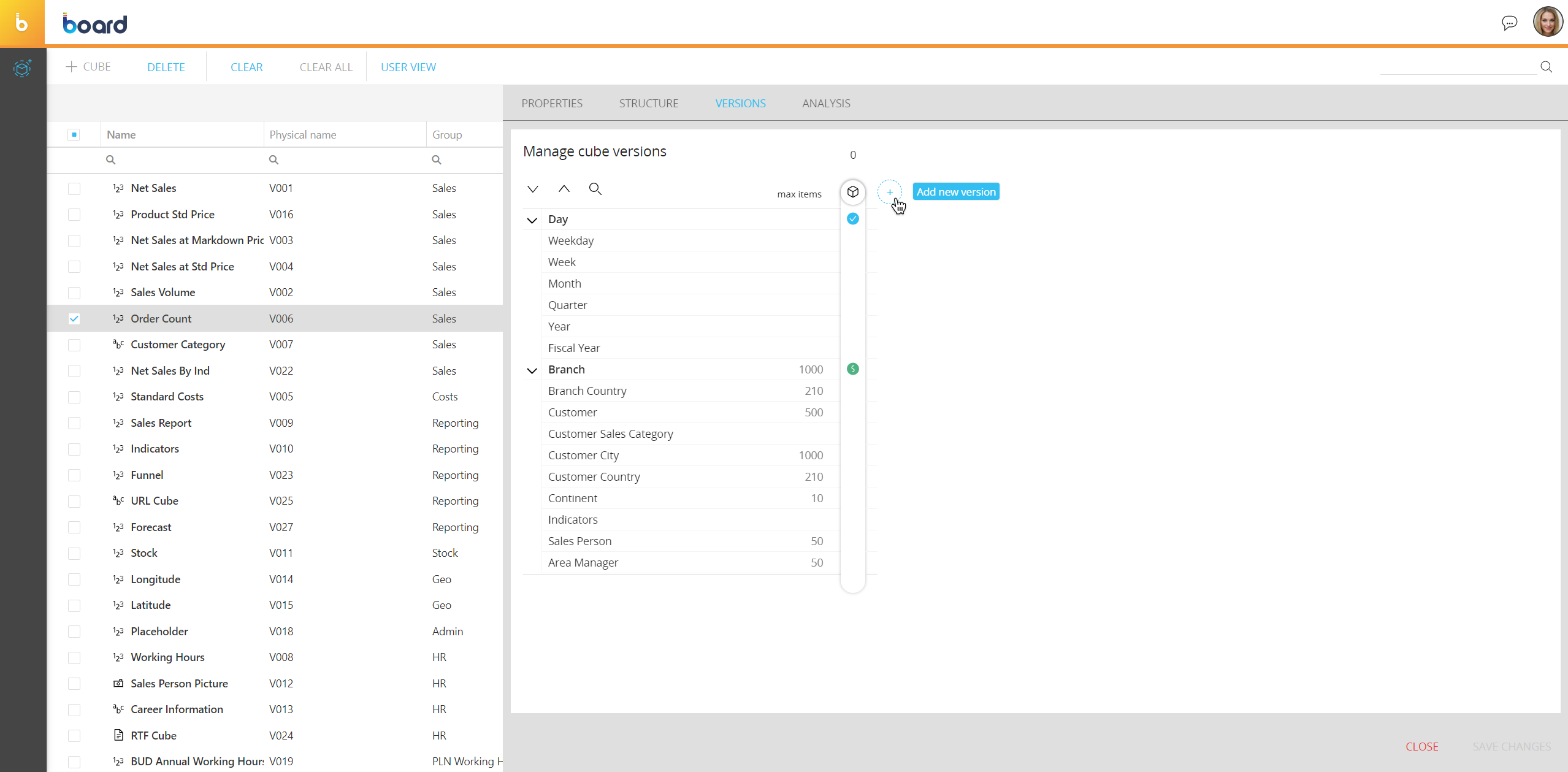 - The structure of a Cube (the first version) should always be the most granular, while additional versions should become more and more aggregated as you create them.