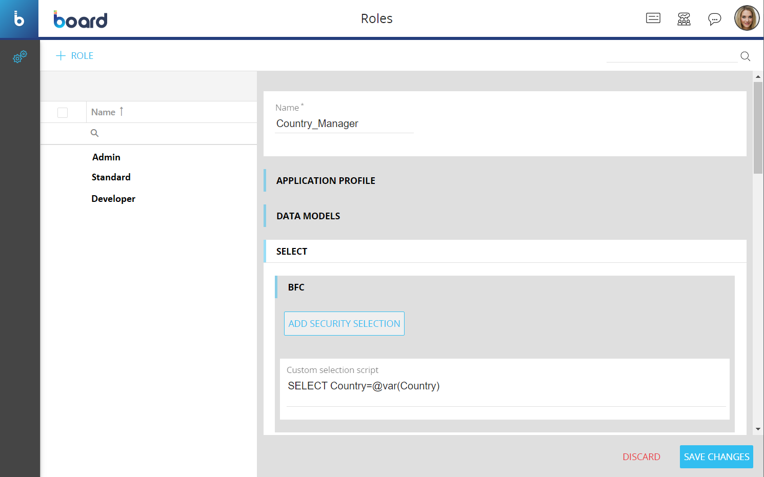 Roles (and the associated Application Profiles) represent the second security layer of Board's Four Security Layers model.