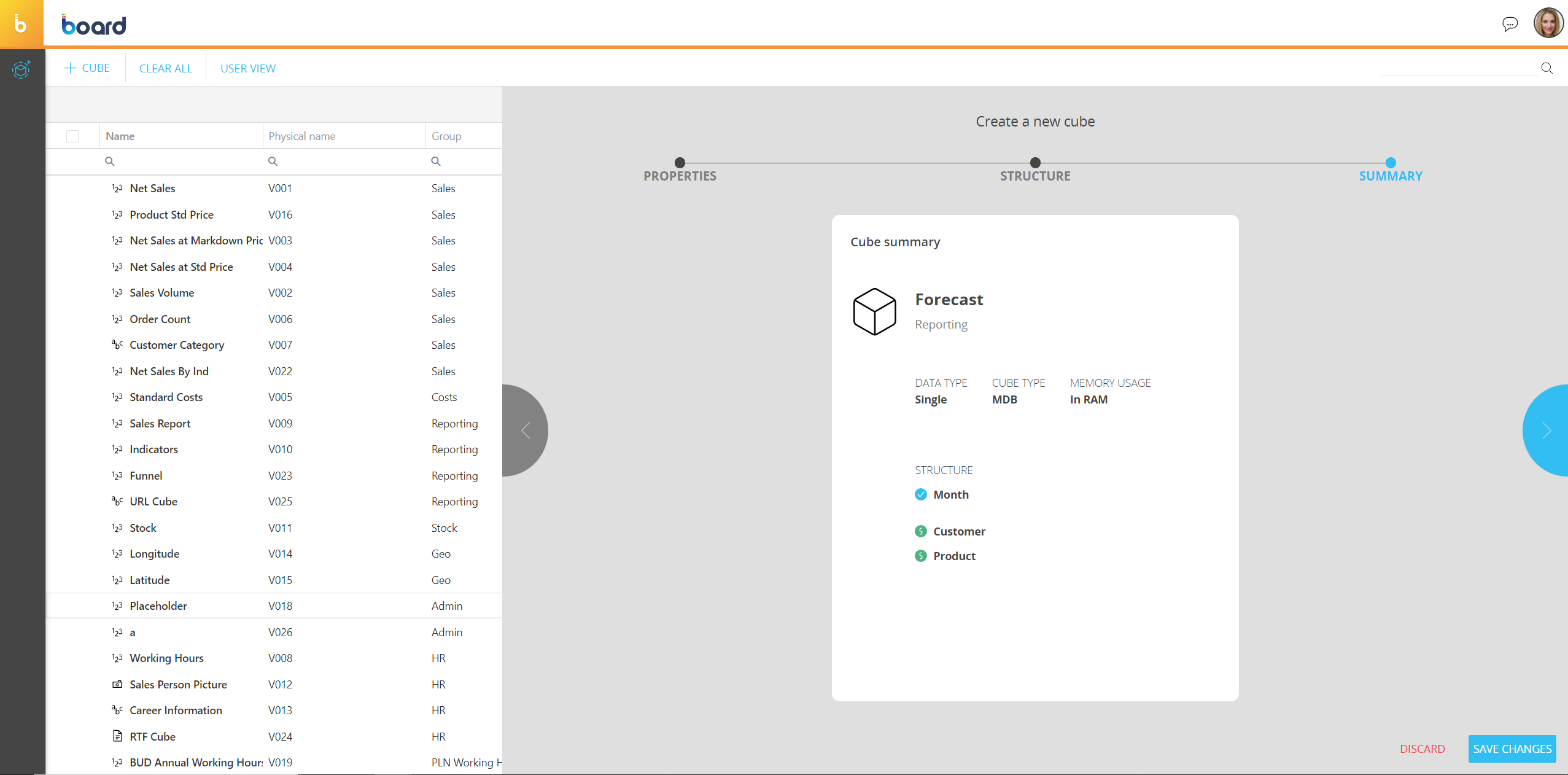 Step 3 - Summary. The last step provides a summary of the Cube attributes and configuration. Click on the "SAVE CHANGES" button to create the Cube and close the wizard.