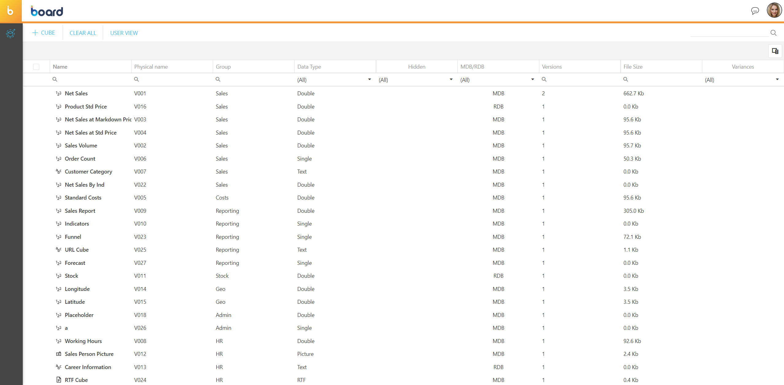 - To clear all Cubes at once, click on the "CLEAR ALL" button above the Cube list. This action will delete all data in all listed Cubes and cannot be undone
