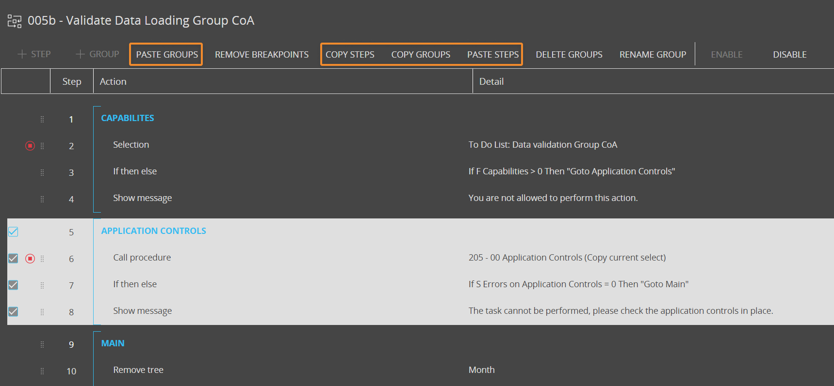 ステップとグループは、すべて同じデータモデルに保存されていれば、同じプロシージャ内または別のプロシージャ内に貼り付けることができます。