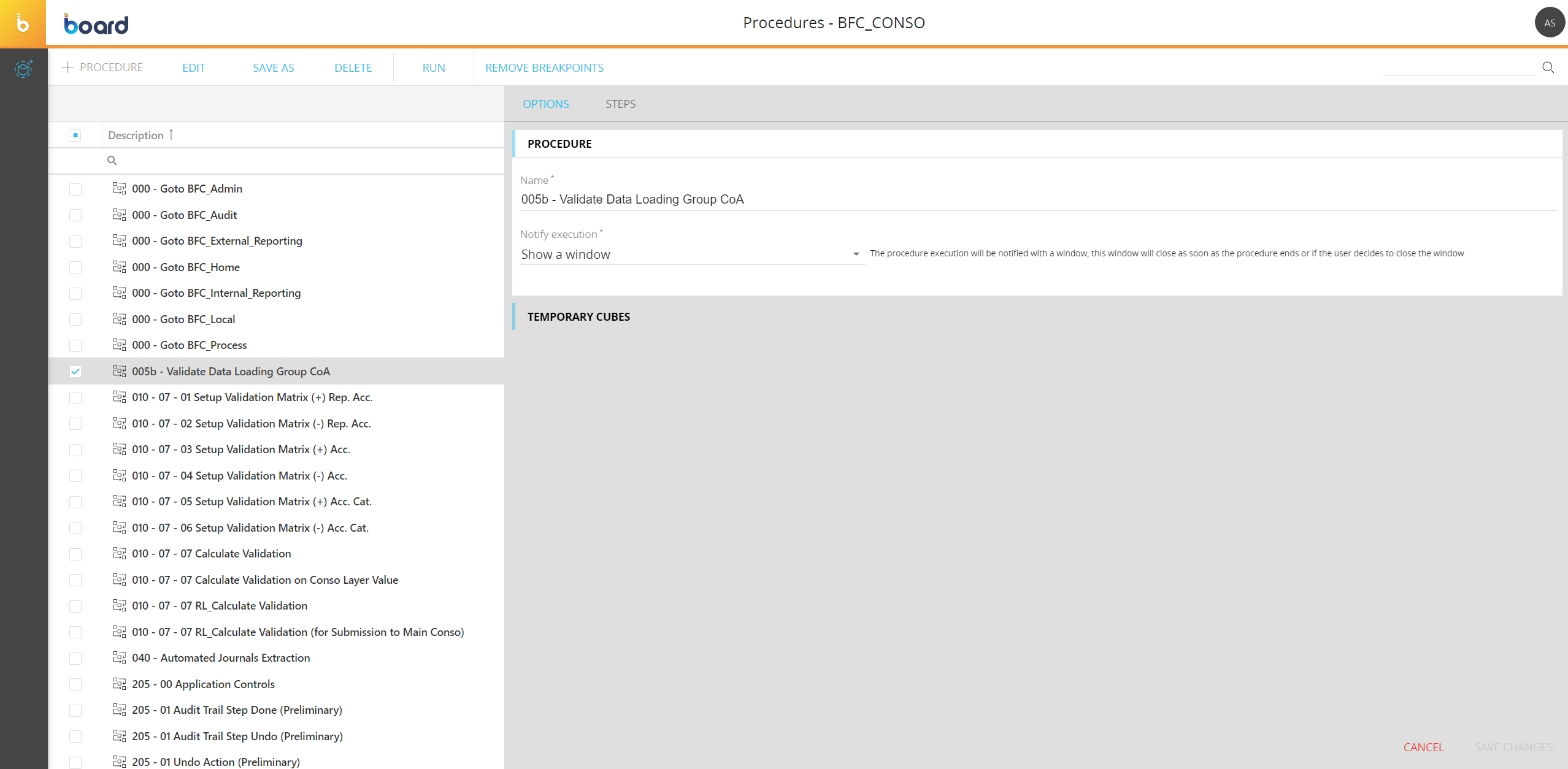 Boardプロシージャは、グループに編成された一連のアクション (別名、ステップ) です。プロシージャの実行は、最初のグループ (通常はメイングループ) の最初のステップから始まり、最初のグループの最後のステップを実行した後に終了します。