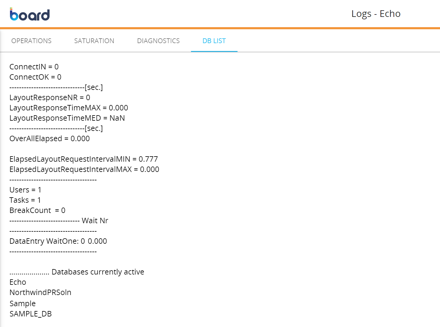 DBリスト(DB LIST). ここでは、現在アクティブなデータモデル、すなわちプラットフォームメモリ(RAM)にロードされているデータモデルの全リストを見ることができます。