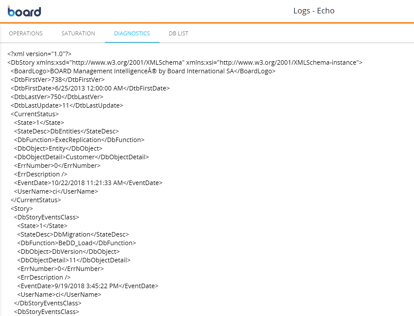 診断(DIAGNOSTICS). ここでは、データモデルの様々な診断の詳細をXML形式で見ることができます。
