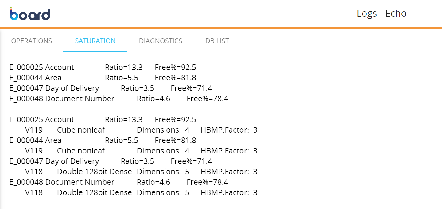 使用率(SATURATION). ここでは、メンバの数に制限がある場合、エンティティおよびそのエンティティを構造に持つキューブの詳細が表示されます。これは通常、エンティティの 最大アイテム数プロパティが "自動"に設定されており、その エンティティが非常に疎な構造を持つキューブの次元である場合に発生します。