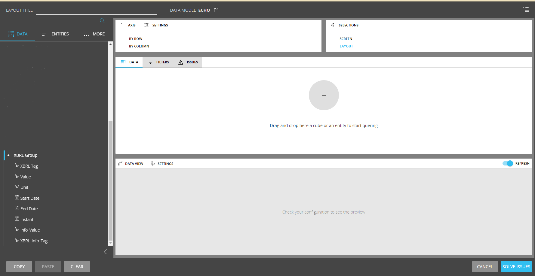 - Associate Layouts to the Data Views, configuring them with the XBRL Tag Cube(s)