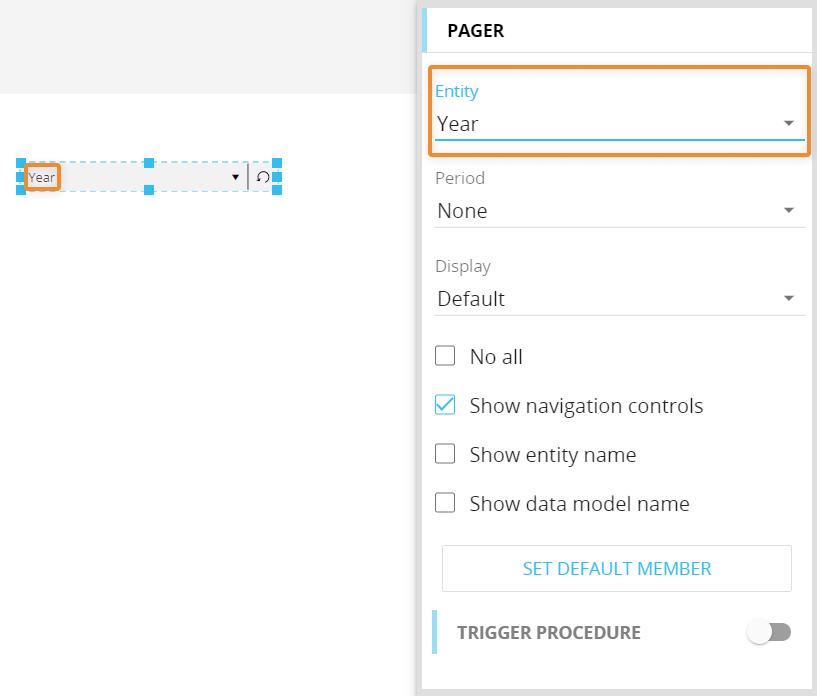 The Trigger Procedure feature is a property of the Pager Object which allows to trigger the execution of a Procedure whenever the end user selects a member.
