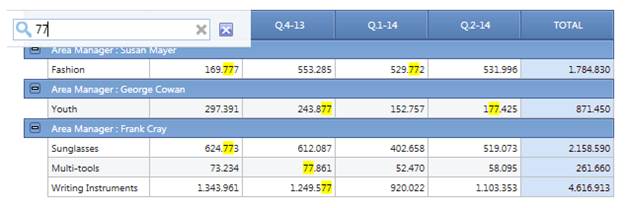 An end-user can easily locate information within the grid via the built-in Search Panel. At runtime, it can be invoked by pressing the CTRL+F shortcut. The built-in Search Panel provides an easy way of searching against multiple columns.